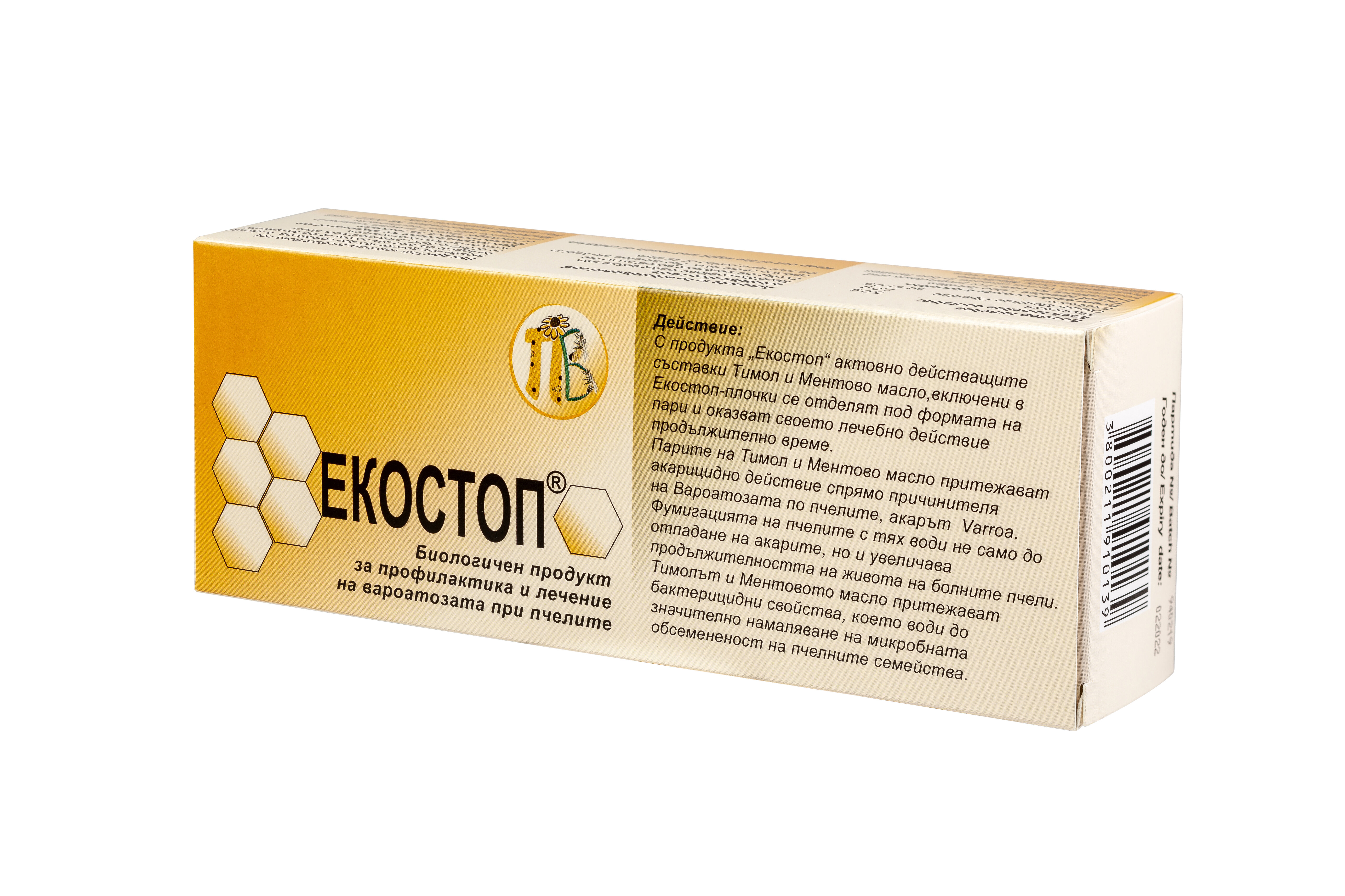 Екостоп е ветеринарен лекарствен продукт с тимол и ментово масло, предназначен за ефективен контрол на Varroa destructor.